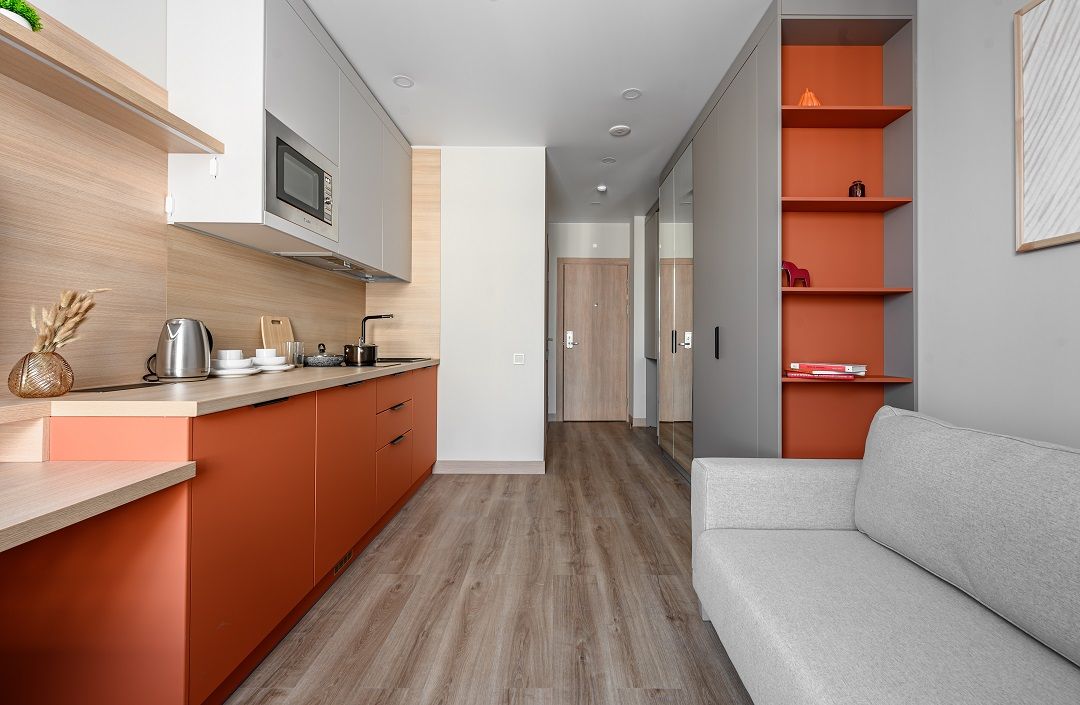 Студия в апарт-отеле Well — это идеальное пространство для тех, кто ценит комфорт, функциональность и современный подход к жизни. Компактная, но продуманная до мелочей, она вмещает всё необходимое для полноценной жизни и работы, оставаясь при этом уютным личным убежищем в ритме большого города.