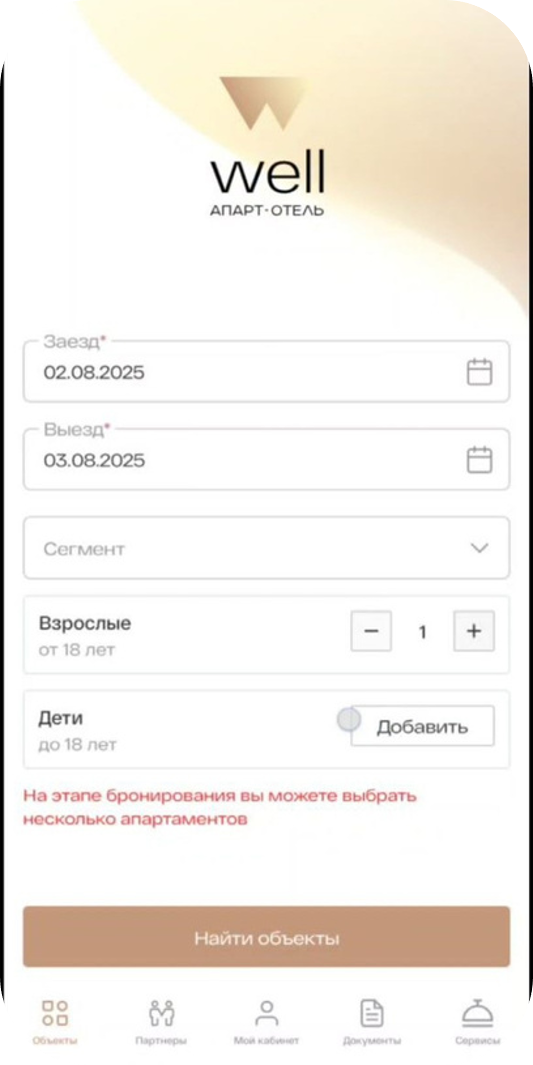 Выбираете даты, категорию апартаментов и количество гостей, указываете номер телефона, оплачиваете онлайн — и сразу получаете подтверждение.